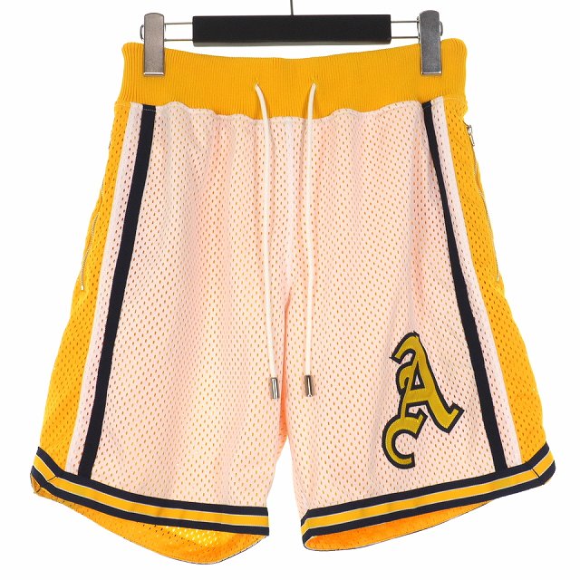 【中古】ミニマル mnml バスケショーツ 黄 イエロー XL ポリエステル ジップポケット ハーフパンツ ショートパンツ メッシュ ドローコード ウエストゴム メンズ 【ベクトル 古着】 190830 リ・ポイント楽天市場店