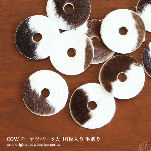 【50%OFF】 アクセサリー パーツ アクセサリーパーツ 手芸用品 手芸 ハンドクラフト レザークラフト 革 レザー 詰合せ 本革 本皮 牛皮 牛革 牛 クラフト イヤリング ピアス ヘアゴム 北欧 かわいい COWドーナツパーツ大 10枚入り 毛あり