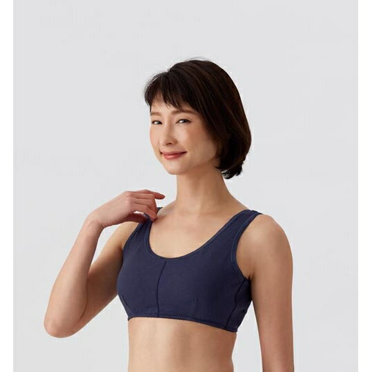 綿100%スムース編ソフトカップ付ブラ ネイビー M [キャンセル・変更・返品不可]